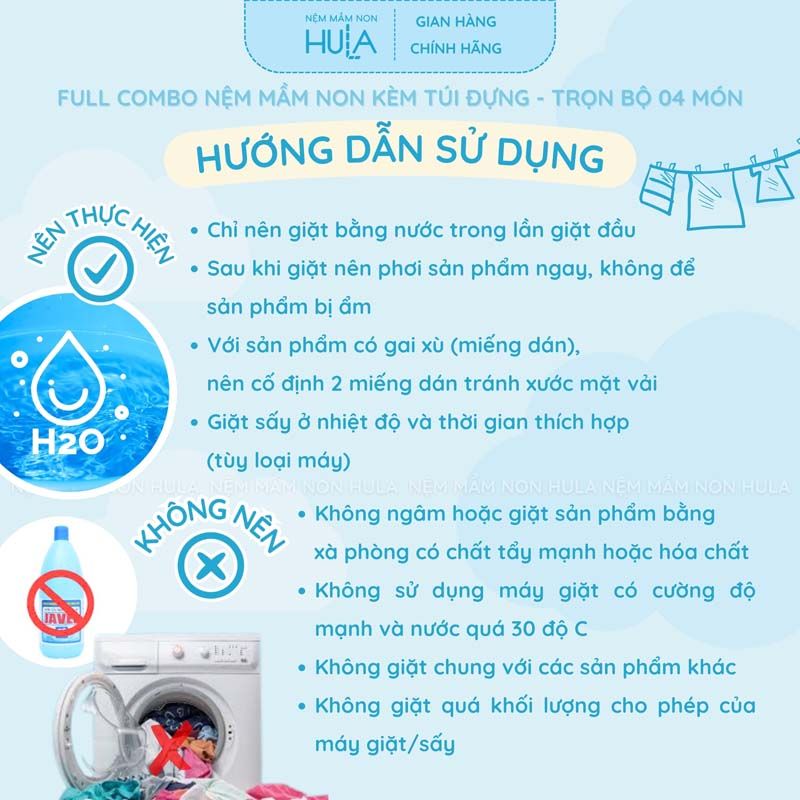 🌟 ƯU ĐIỂM NỔI BẬT CỦA BỘ NỆM MẦM NON 4 MÓN HULA