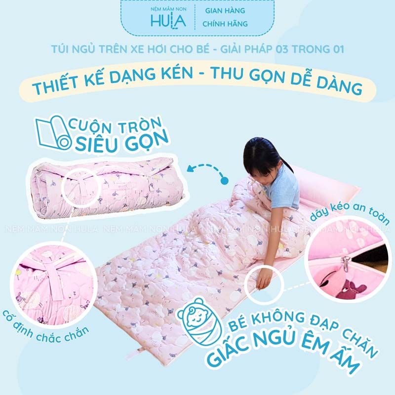[CHÍNH HÃNG HULA] Túi Ngủ Mầm Non 3 Trong 1 Họa Tiết Cừu Hồng Mơ Màng - Thiết Kế Dạng Kén, Chống Đạp Chăn, Kèm Túi Trụ Đa Năng